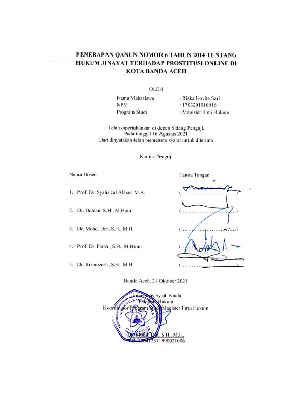 Baca Juga : PENEGAKAN HUKUM TERHADAP TINDAK PIDANA PROSTITUSI MENGGUNAKAN MEDIA ONLINE (SUATU PENELITIAN DI WILAYAH HUKUM KEPOLISIAN RESOR KOTA BANDA ACEH) (Ayu Azzahrawani, 2018)