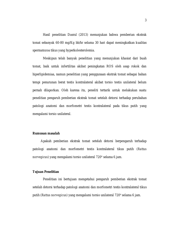Baca Juga : PENGARUH PEMBERIAN EKSTRAK TOMAT (LYCOPERSICUM ESCULENTUM L) SETELAH DETORSI TERHADAP UKURAN TUBULUS SEMINIFERUS TESTIS KONTRALATERAL TIKUS (RATTUS NORVEGICUS) YANG MENGALAMI TORSIO UNILATERAL. (AMIRULLAH, 2021)