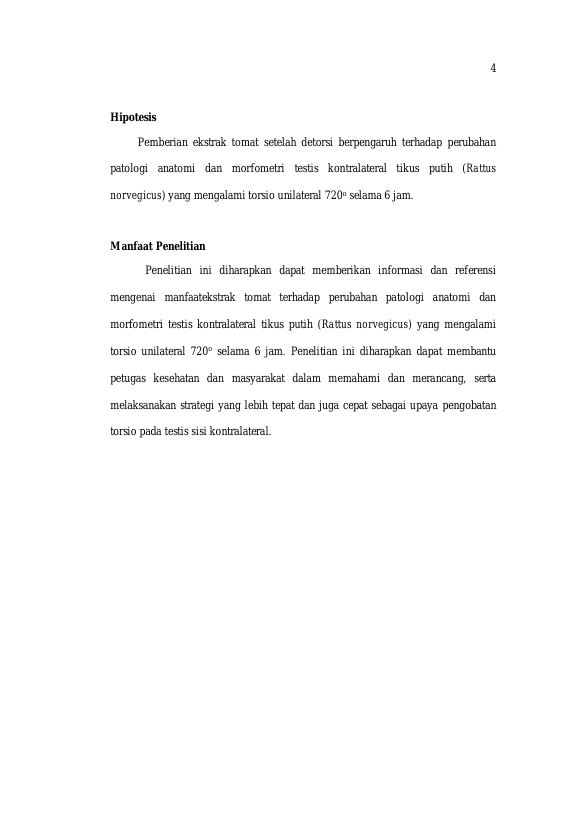 Baca Juga : PENGARUH PEMBERIAN EKSTRAK TOMAT (LYCOPERSICUM ESCULENTUM L) SETELAH DETORSI TERHADAP UKURAN TUBULUS SEMINIFERUS TESTIS KONTRALATERAL TIKUS (RATTUS NORVEGICUS) YANG MENGALAMI TORSIO UNILATERAL. (AMIRULLAH, 2021)