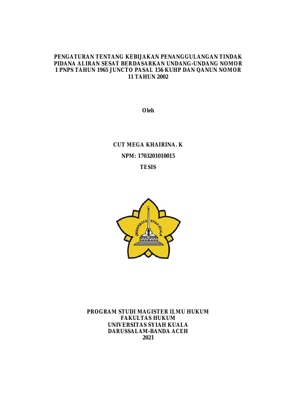 Baca Juga : PENGATURAN TENTANG KEBIJAKAN PENANGGULANGAN TINDAK RNPIDANA ALIRAN SESAT BERDASARKAN UNDANG-UNDANG NOMOR RN1 PNPS TAHUN 1965 JUNCTO PASAL 156 KUHP DAN QANUN NOMOR RN11 TAHUN 2002 (Cut Mega Khairina Kesuma, 2022)
